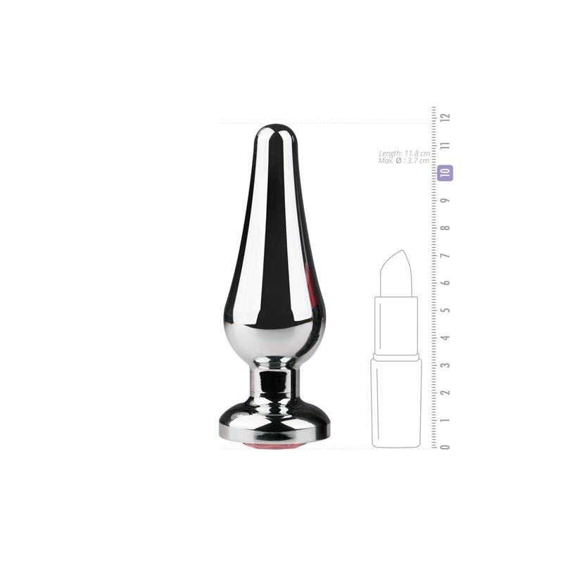 Este plug anal cuenta con una punta cónica, con un cuerpo bulboso y con un cuello delgado, muy fácil de insertar y muy placentero de utilizar. Fabricado de aluminio es conductivo de la temperatura, llegando a la temperatura corporal enseguida, pero también puedes calentarlo con agua tibia o enfriarlo metiéndolo en la nevera. En la parte de la base encontrarás una piedra brillante que adornará tus noches.