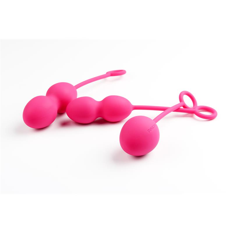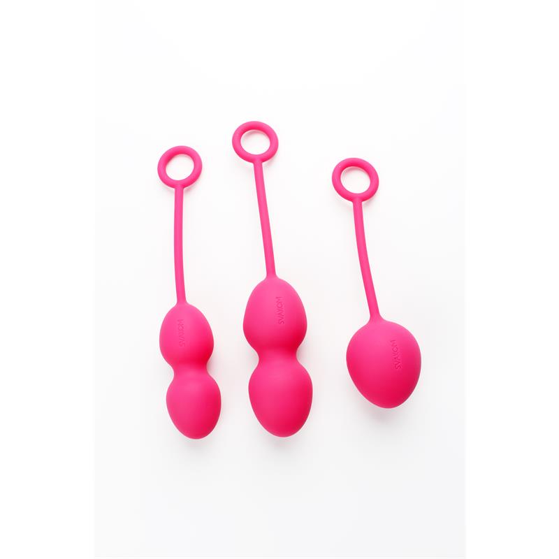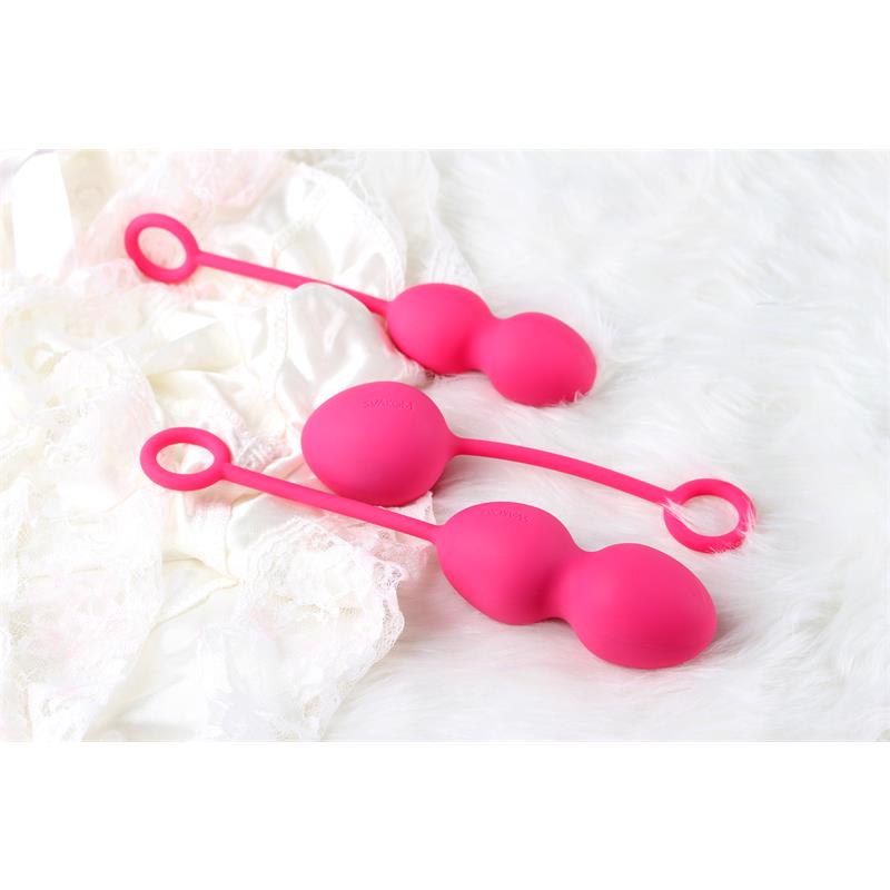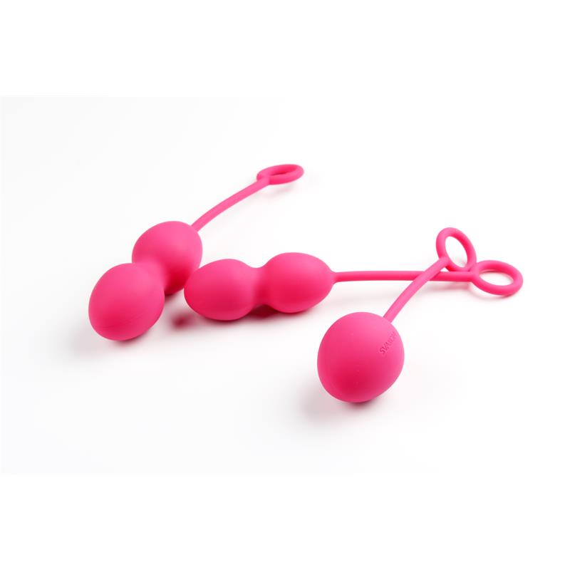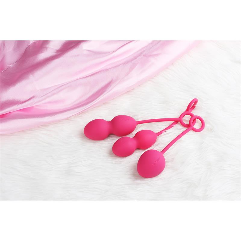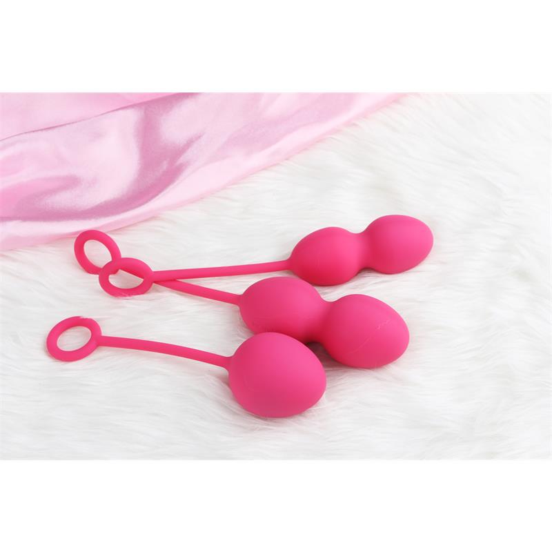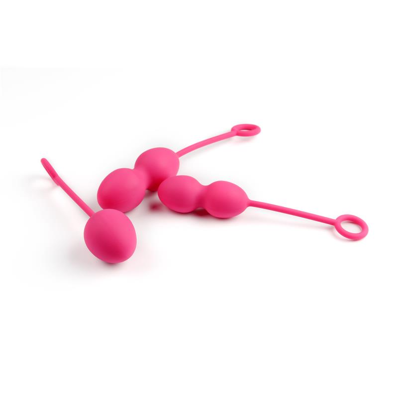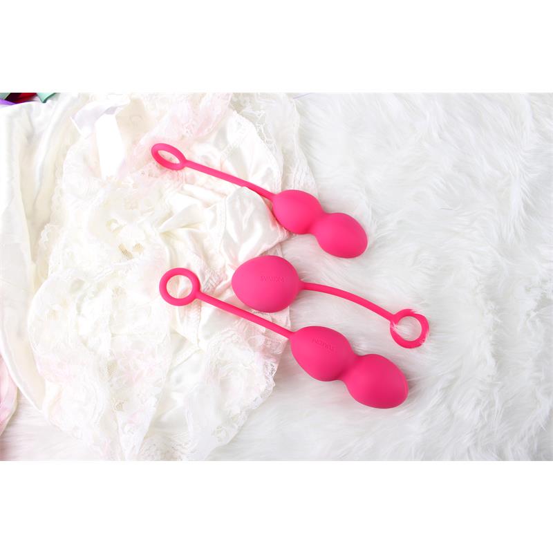 Las bolas Kegel para ejercicios de suelo pélvico con un set creado por expertos que cuenta con 3 bolas de diferentes tamaños. Cada una de las bolas está equipada con un cordón de silicona para una fácil extracción. Las tres están fabricadas con silicona suave y segura para el cuerpo, lo que las hace 100% impermeables.